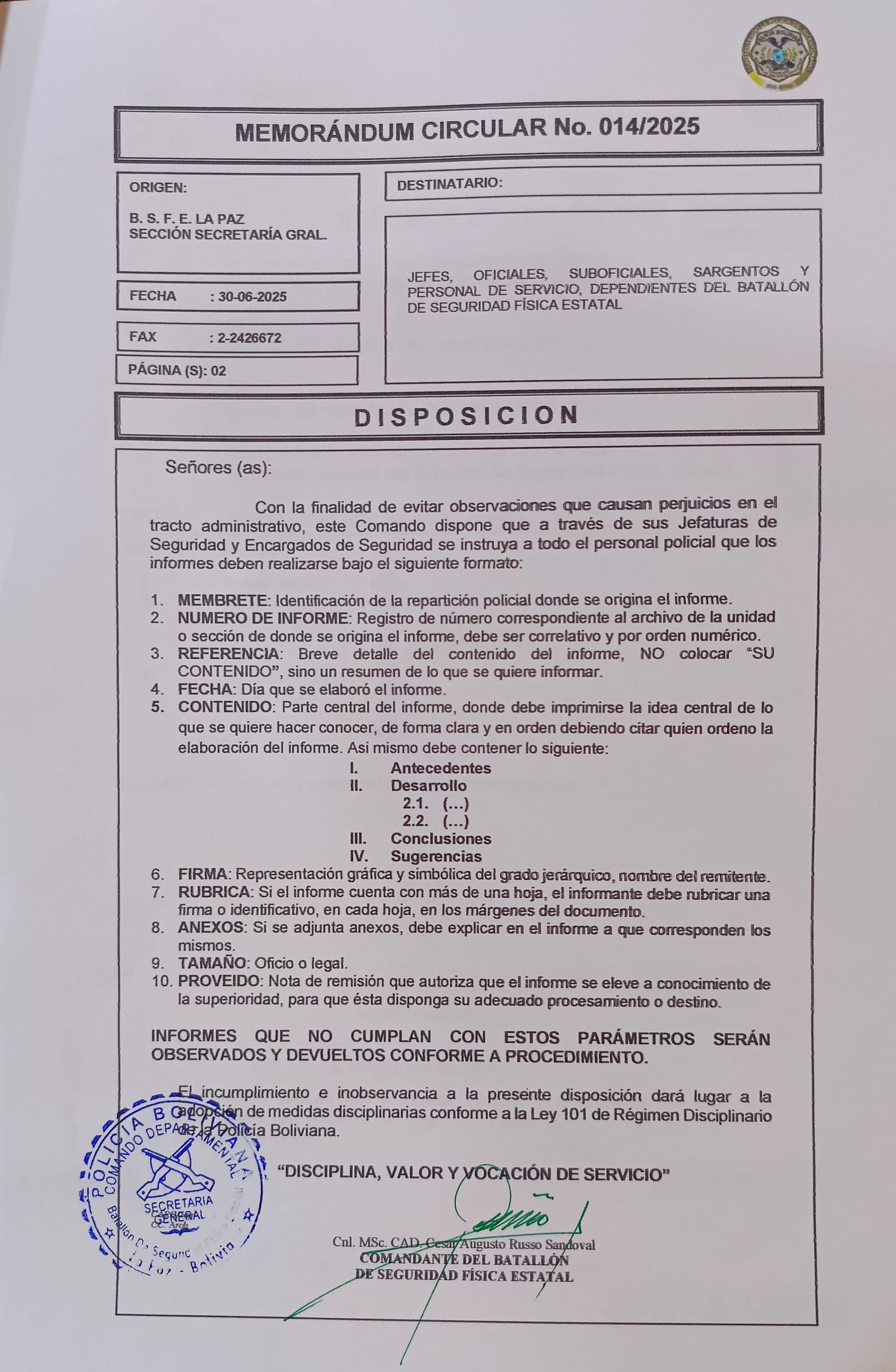MEMORÁNDUM CIRCULAR 14/25 FORMATO DE INFORME